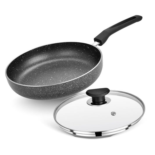 Glaze Non-Stick Fry Pan with Glass Lid, Durable Aluminum Skillet with Cool-Touch Handle, Scratch-Resistant, PFOA-Free, Compatible with Induction, Gas, and Electric Stoves