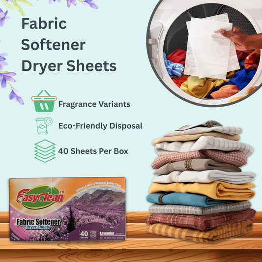 Easyclean Fabric Softener Dryer Sheets Assorted Scents – Fresh Fragrance, Long-Lasting Fresh Scent, Softens Clothes, Reduces Static & Wrinkles, For All Fabric Types, Convenient & Easy-to-Use