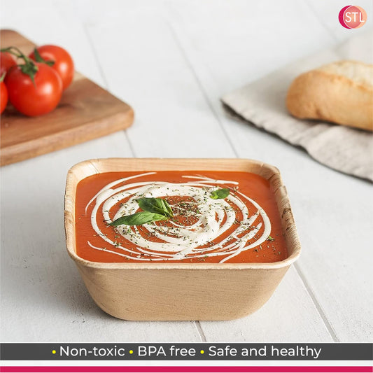 STL 25-Pack Disposable Palm Leaf Bowl, Sustainable, Microwave & Freezer Safe, Ideal for Desserts, Salads, & Snacks, Eco-Conscious Party & Event Tableware
