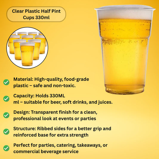 STL Clear Plastic Pint Cups Disposable Beer Glasses Tumblers, Sturdy & Crack-Resistant, Perfect Beer Cups for Parties, BBQs, Events & Festivals