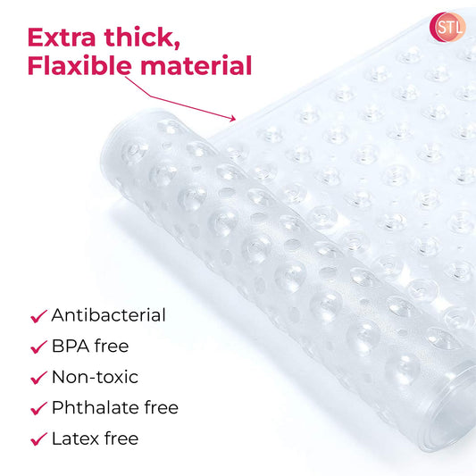 STL Extra Long Non Slip Bath Mat 40x70cm Anti Mold Shower Mat with Suction Cups & Drain Holes, Machine Washable, Safe for Kids & Elderly, Clear Bathroom & Bathtub Mat