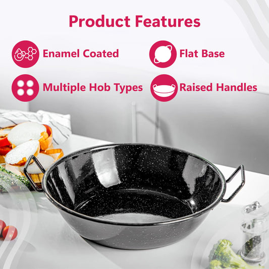 STL Enamel Non-Stick Wok Pan Kadhai with Raised Handles, Induction Safe, Flat Base for Even Heat Distribution, Heavy Duty Karahi for Shallow & Deep Frying, Black White Dots Design