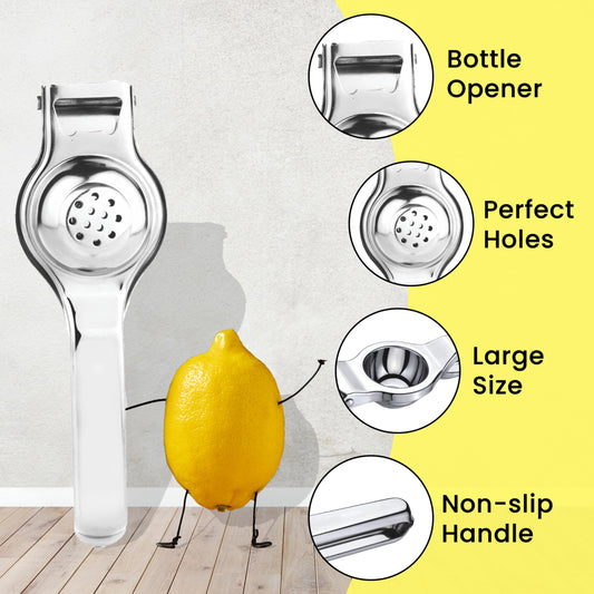 STL Manual Lemon Squeezer Heavy Duty, Premium Stainless Steel Lemon Orange Lime Citrus Press Juicer Hand Juicer, | 2 in 1 | Comes with Bottle Opener Anti Corrosive and Dishwasher Safe
