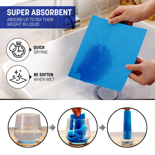 STL Swedish Sponge Dish cleaning cloth Super Absorbent & Odour Free Dish Cloths For Kitchen Eco Friendly Biodegradable disposable & Sustainable Reusable Sponge Paper Towel Alternative