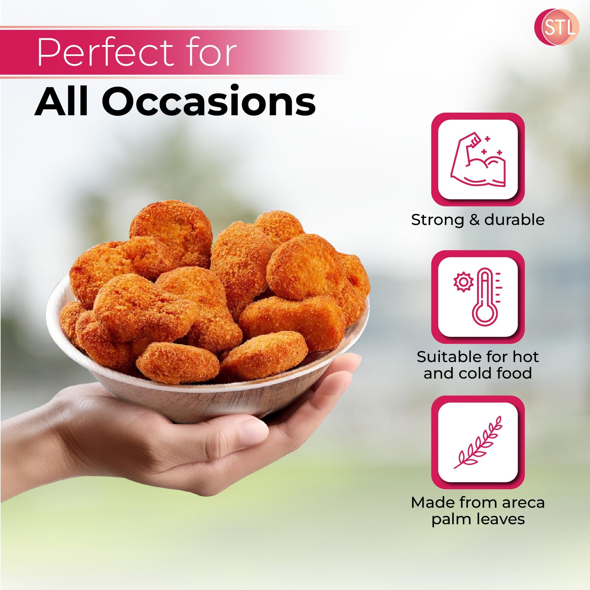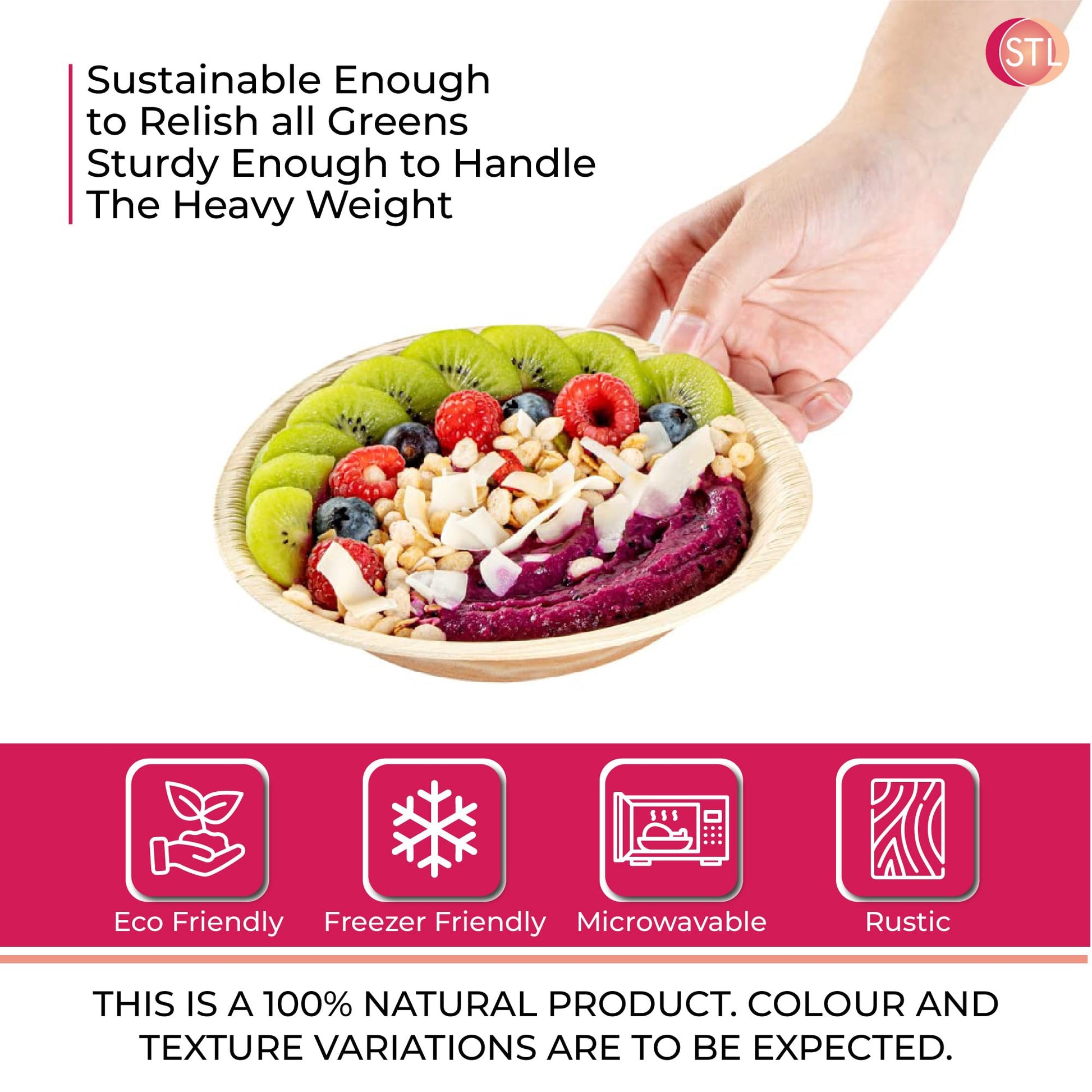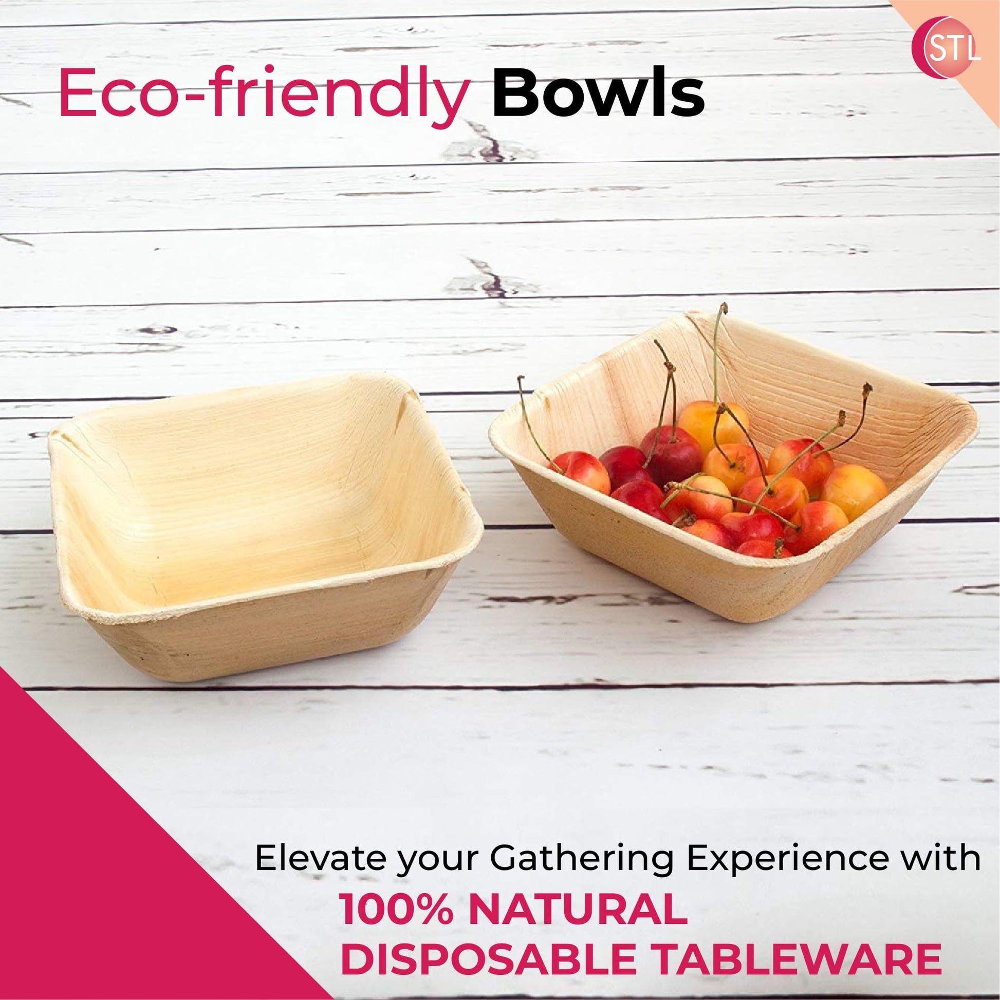 STL 25-Pack Disposable Palm Leaf Bowl, Sustainable, Microwave & Freezer Safe, Ideal for Desserts, Salads, & Snacks, Eco-Conscious Party & Event Tableware