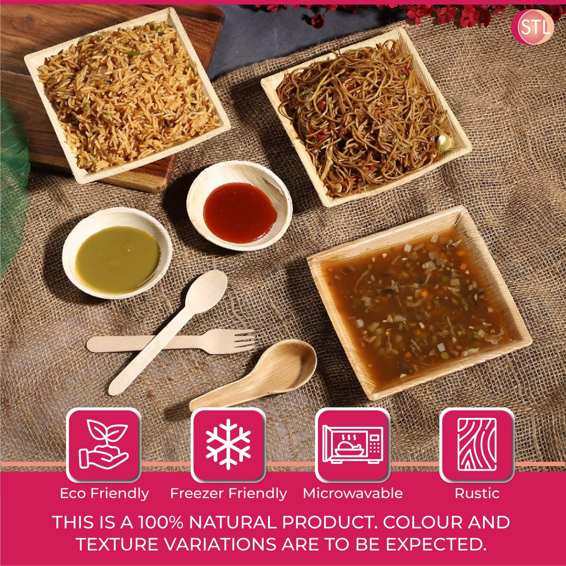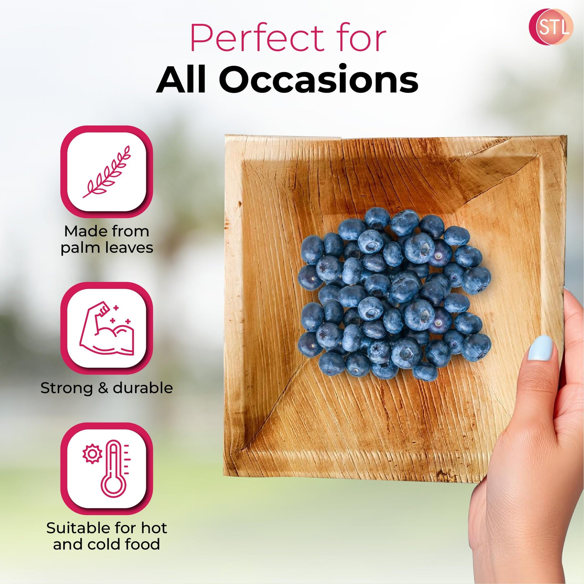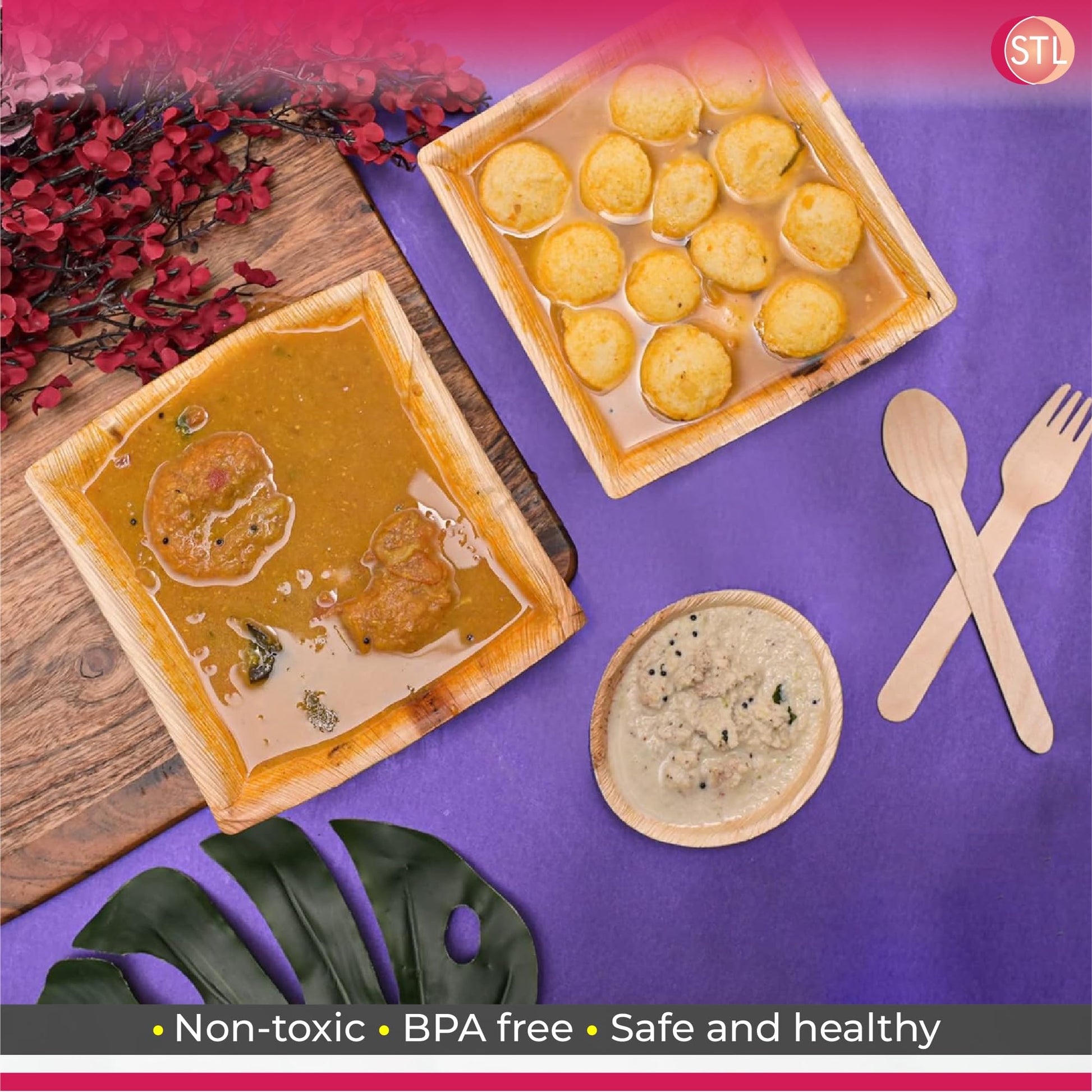 STL 25-Pack Disposable Palm Leaf Bowl, Sustainable, Microwave & Freezer Safe, Ideal for Desserts, Salads, & Snacks, Eco-Conscious Party & Event Tableware