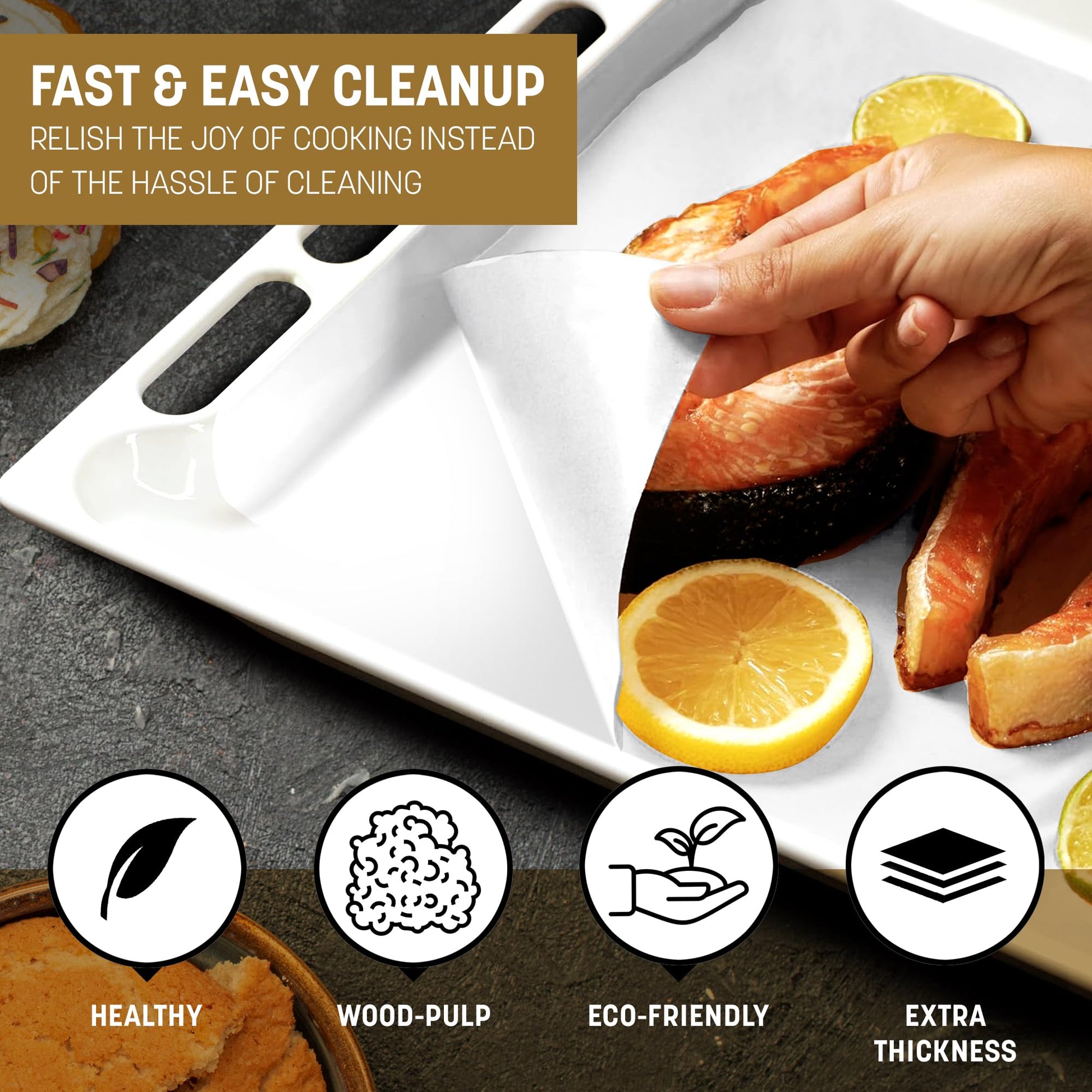 Baking Paper Roll offers 8 meters of high-quality, non-stick, and greaseproof baking paper, perfect for all your kitchen needs. Whether you’re lining cake tins, wrapping food for storage or freezing, or baking delicate pastries, this versatile paper ensures a clean, hassle-free experience every time. It is oven-safe up to 230°C, making it ideal for a wide range of baking, roasting, and grilling applications. The easy-to-cut roll allows you to use only what you need, minimizing waste while providing the perfect fit for your baking trays and food storage. Plus, it's a great eco-friendly alternative to plastic wraps, offering a sustainable way to keep your food fresh. Say goodbye to sticky messes and enjoy the convenience and durability of Sealapack Baking Paper Roll in your kitchen.