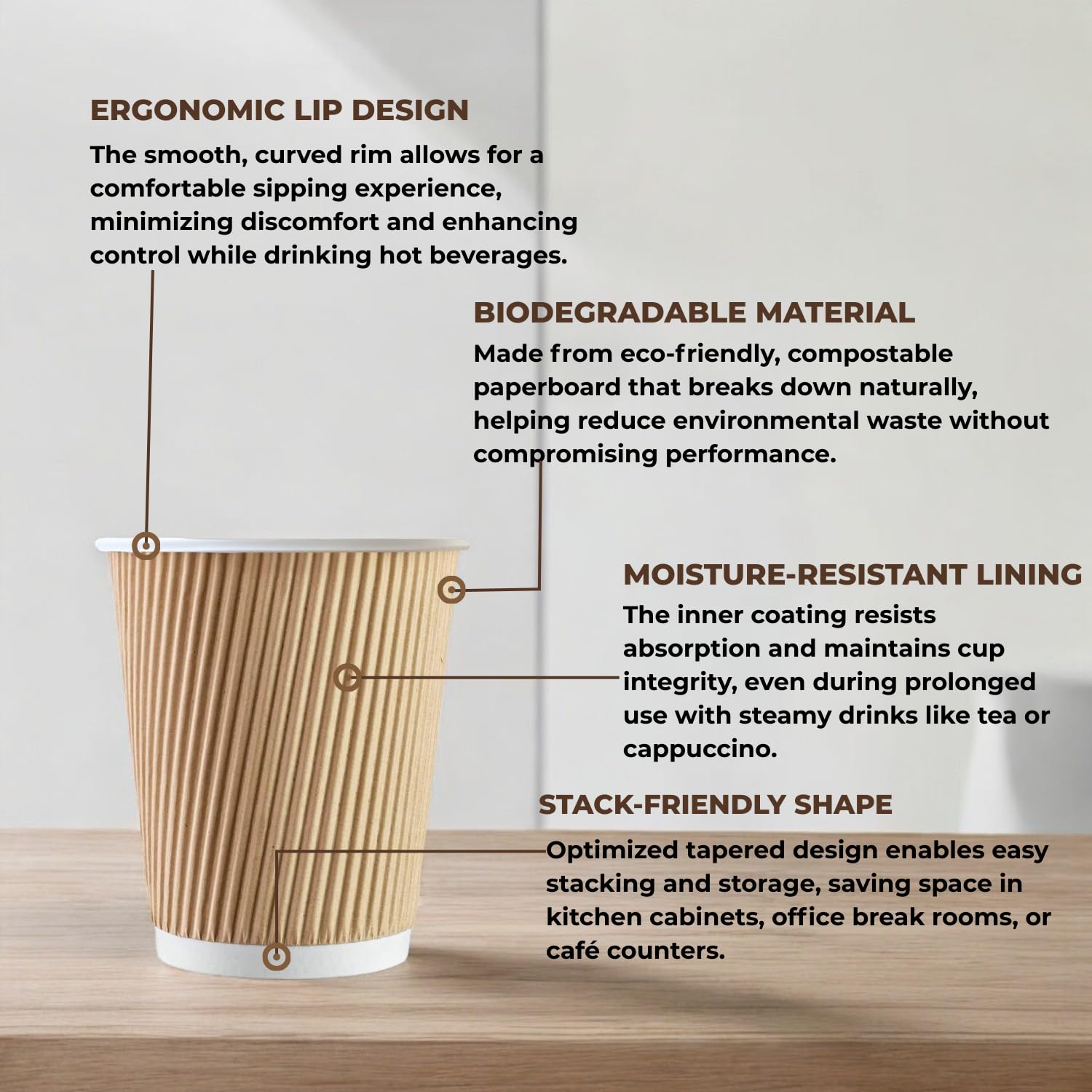 STL (Pack of 1000X12Oz)Ripple Paper Cups, Disposable kraft paper cups for Hot and cold drinks, Insulated Leak-Proof coffee cups,tea cups,Takeway coffee cup,Microwave Safe, Ideal for Café,Office,Events
